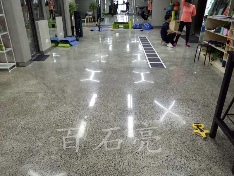 大厅内地面采用了灰白黑钢化水磨石地面,光滑的地面在灯光的照射下遥相呼应。既突出了地面的光滑立体,又在灯光中闪现灵动的气氛。你会发现身上的每一个运动细胞都跳跃,忍不住也参与在钢化水磨石地面上进行一场酣畅淋漓的运动呢?接下来让我为您展示下我们的精心施工打磨的小花絮: